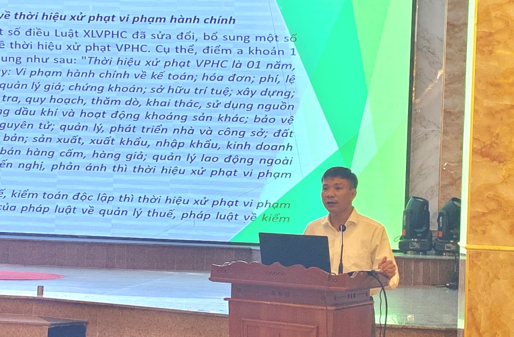 Tại Hội nghị, các đại biểu đã được nghe đồng chí Vũ Quốc Thịnh – Trưởng Phòng Kiểm tra văn bản và quản lý xử lý vi phạm hành chính trình bày những nội dung cơ bản, những đểm mới của Luật sửa đổi, bổ sung một số điều của Luật Xử lý vi phạm hành chính, kỹ năng, nghiệp vụ trong quá trình giải quyết các vụ việc vi phạm hành chính. Cũng tại Hội nghị báo cáo viên đã cùng đại biểu tham dự Hội nghị trao đổi, giải đáp những khó khăn, vướng mắc trong công tác xử lý vi phạm hành chính.