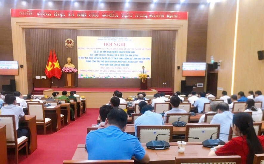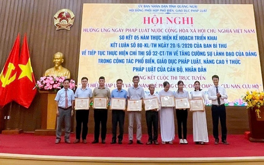 Qua hơn 12 năm triển khai, đến nay Ngày Pháp luật nước Cộng hòa xã hội chủ nghĩa Việt Nam (viết tắt là Ngày Pháp luật Việt Nam), ngày 9/11 hằng năm, đã được tổ chức đồng bộ, ngày càng thiết thực, hiệu quả, thấm sâu vào đời sống xã hội, lan tỏa đến các cơ quan, tổ chức, doanh nghiệp, trường học và Nhân dân trên địa bàn tỉnh. Tiếp tục thực hiện Luật Phổ biến, giáo dục pháp luật, kế hoạch phổ biến, giáo dục pháp luật năm 2025; đồng thời nhằm khơi dậy tinh thần thượng tôn Hiến pháp và pháp luật, Hội đồng Phối hợp phổ biến, giáo dục pháp luật tỉnh đã tổ chức Hội nghị hưởng ứng Ngày Pháp luật Việt Nam năm 2025 với 02 nội dung: (1) “Sơ kết, đánh giá hiệu quả 05 năm thực hiện Quyết định số 1521/QĐ-TTg ngày 06/10/2020 của Thủ tướng Chính phủ về tổ chức triển khai Kết luận số 80-KL/TW ngày 20/6/2020 của Ban Bí thư về việc tiếp tục thực hiện Chỉ thị số 32-CT/TW, ngày 09-12-2003 của Ban Bí thư về tăng cường sự lãnh đạo của Đảng trong công tác phổ biến, giáo dục pháp luật, nâng cao ý thức pháp luật của cán bộ, Nhân dân”; (2) Tổng kết Cuộc thi trực tuyến “Tìm hiểu pháp luật và kỹ năng về phòng cháy, chữa cháy và cứu nạn, cứu hộ” trên địa bàn tỉnh Quảng Ngãi.